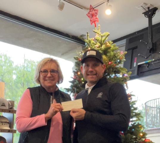 Amelia Lyons, our Junior Girls’ Golf Chairperson, presents our $300 Donation to the Liberty Junior girls Head Coach, Curtis Cunningham.